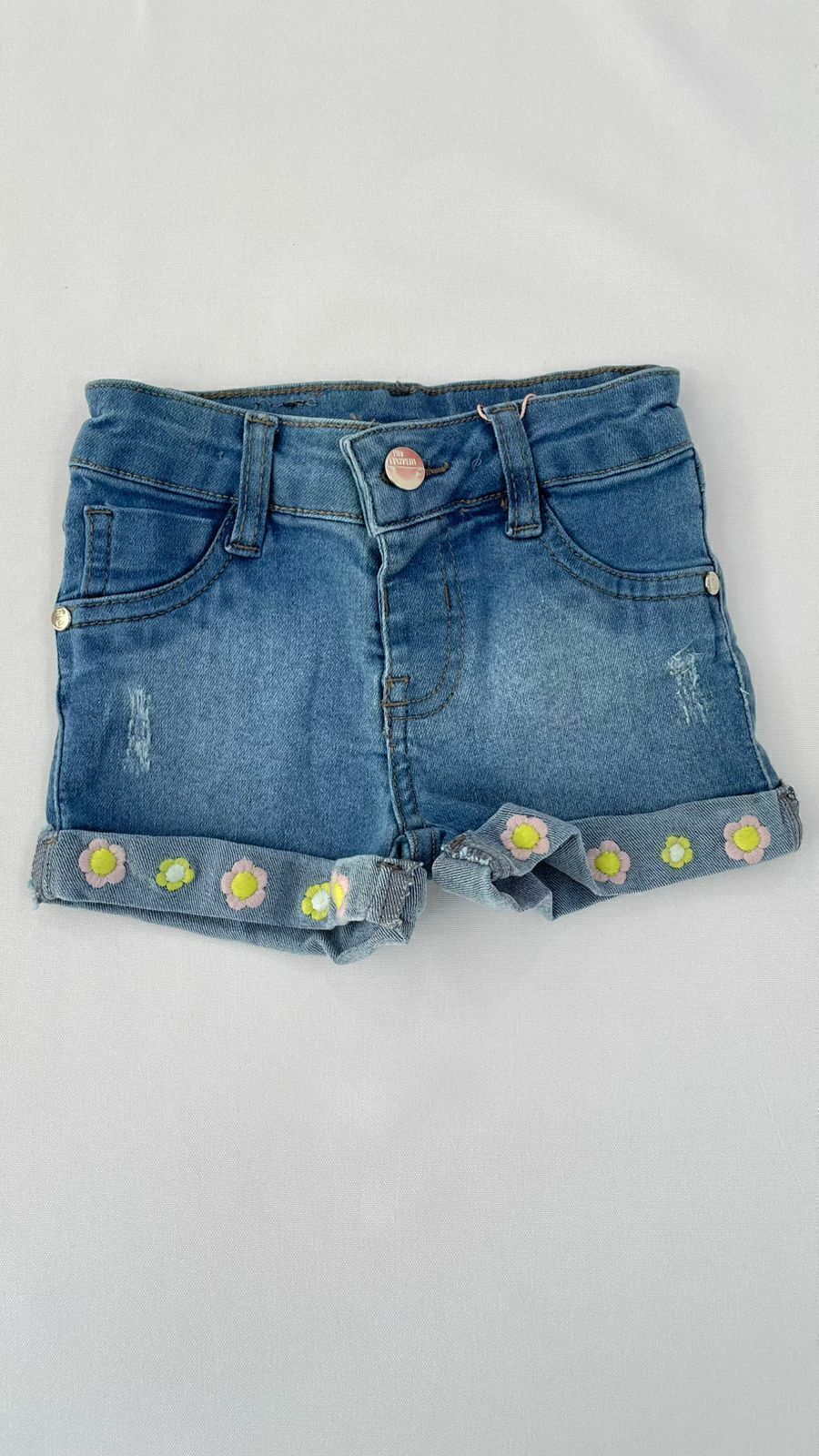 Um charme para os dias de sol! Este short jeans infantil feminino combina conforto, estilo e delicadeza em uma só peça. Feito em jeans com elastano, oferece liberdade de movimento para as pequenas brincarem com conforto. As flores bordadas na barra dão um toque lúdico e encantador ao visual. Conta ainda com ajuste interno na cintura, garantindo melhor caimento e praticidade no uso.